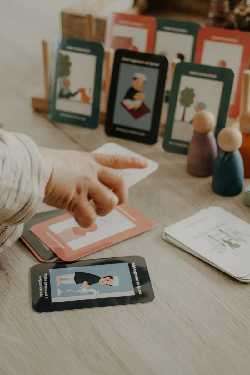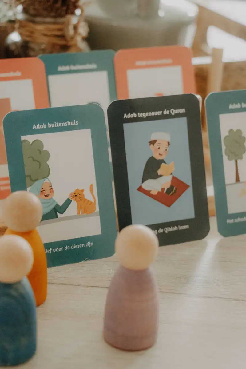 Deze super leuke memory kaartspel van Growing Muslim om Adab op een speelse manier aan te leren, stimuleer je het cognitief geheugen. Het kind probeert te onthouden welke plaatjes waar liggen. Daarbij sorteert het de goede kaartjes bij elkaar. Tijdens het oppakken van de kaartjes gebruikt het kind zijn fijne motoriek. Dus je stimuleert veel meer dan dat je denkt..