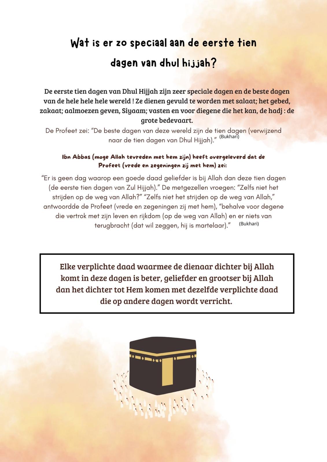 Dhul Hijjah is een hele bijzondere maand in islam. Het is de maand waarin miljoenen moslims op bedevaart gaan naar Mekka (de Hajj), waarin we Eid al-Adha vieren, én waarin we kunnen leren hoe we dichter bij Allah kunnen komen door goede daden, geduld en dankbaarheid.